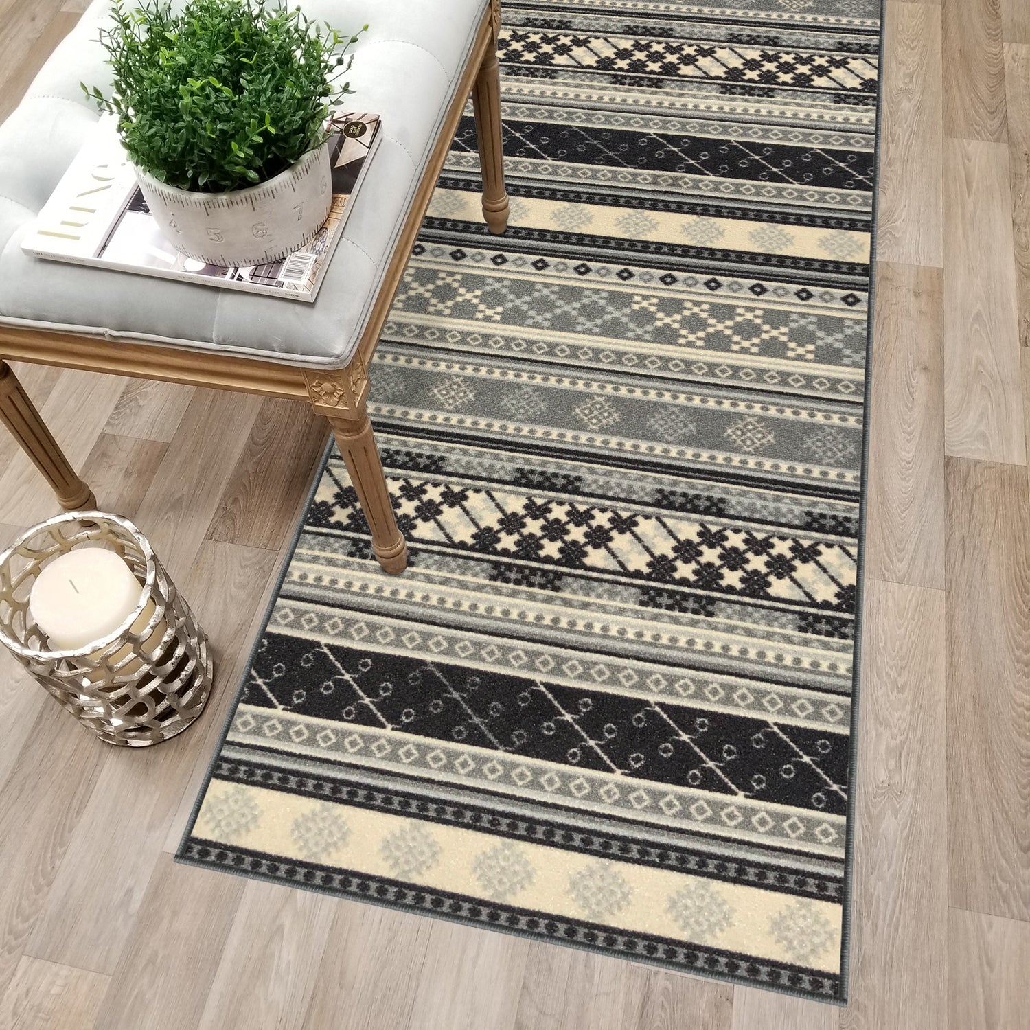 Bohemian Kilim Grey Black Custom Size Carpet Runner Rug