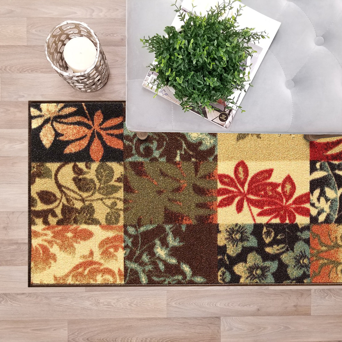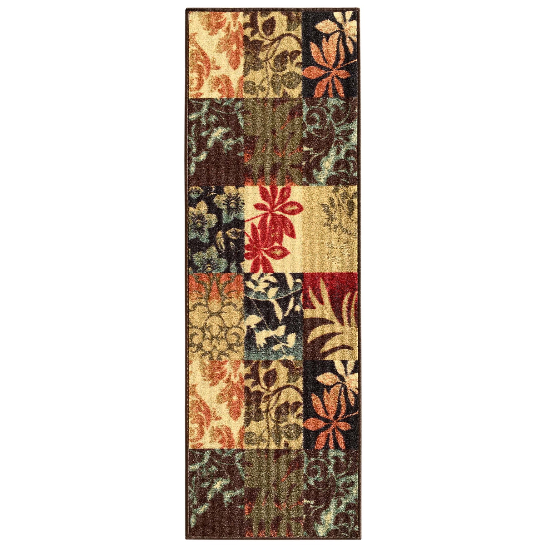 Contemporary Floral Brown Multicolor Boxes Custom Size Carpet Runner Rug