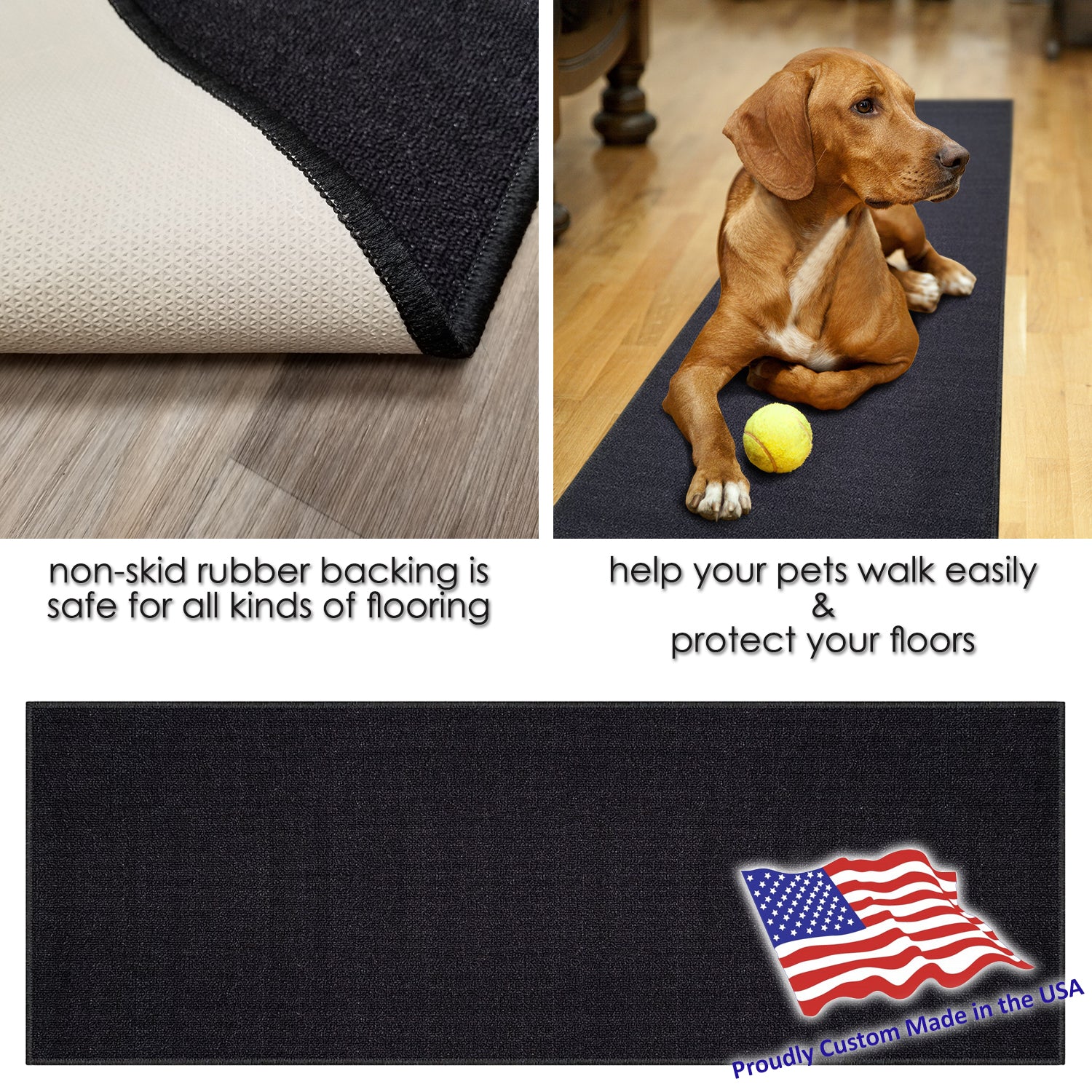 Our premium quality non-slip rubber backing is safe to use on hardwood, laminate, vinyl, marble, and tile flooring. Our rubber backed runner rugs help your kids & pets safely walk on slippery hallways, stairs, kitchens and living room floors while protecting it from high traffic usage. Efficient low-pile does not add bulk to your floor and allow for perfect placement under furniture and doors as well as on stairs. Proudly custom made in the USA with imported materials.