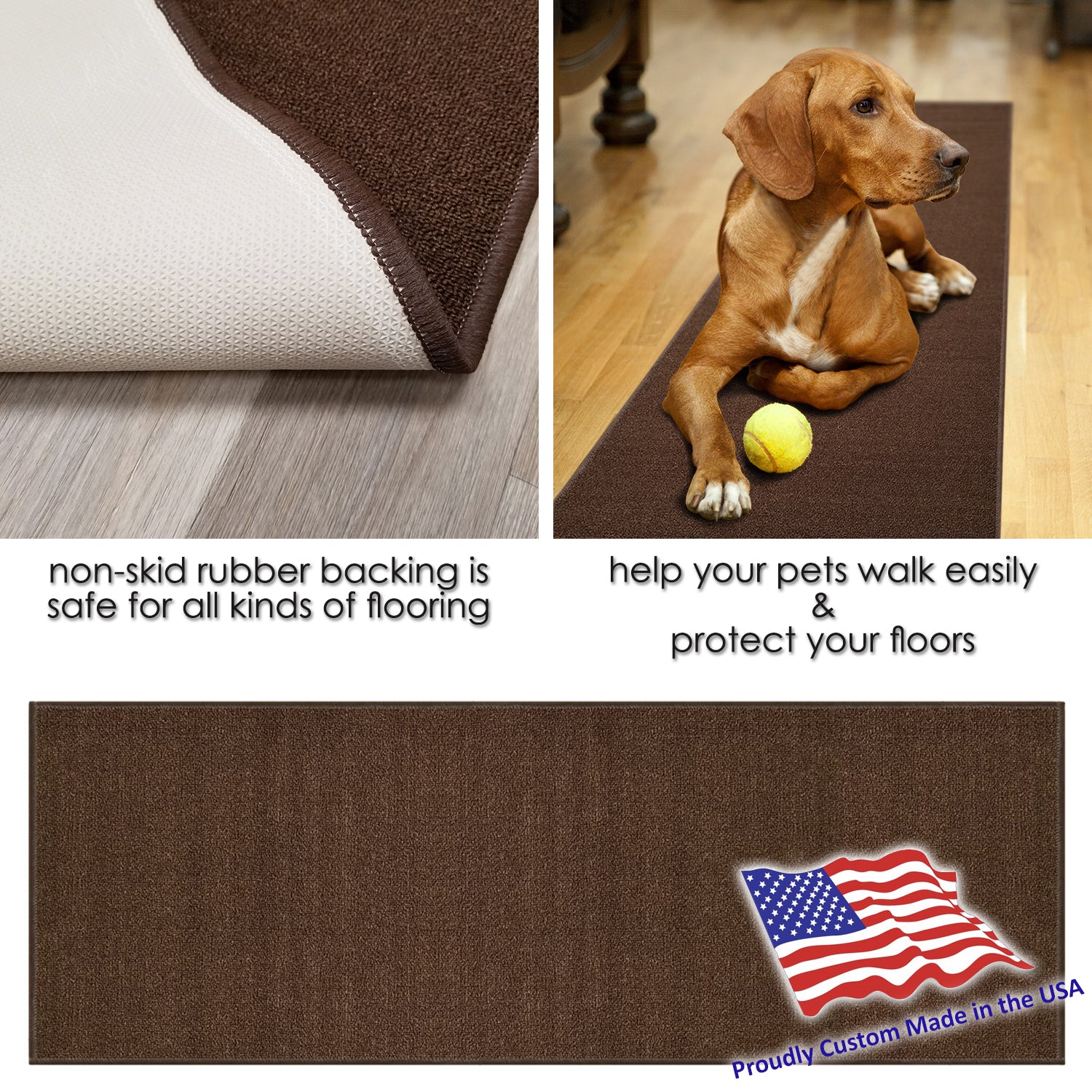 Our premium quality non-slip rubber backing is safe to use on hardwood, laminate, vinyl, marble, and tile flooring. Our rubber backed runner rugs help your kids & pets safely walk on slippery hallways, stairs, kitchens and living room floors while protecting it from high traffic usage. Efficient low-pile does not add bulk to your floor and allow for perfect placement under furniture and doors as well as on stairs. Proudly custom made in the USA with imported materials.