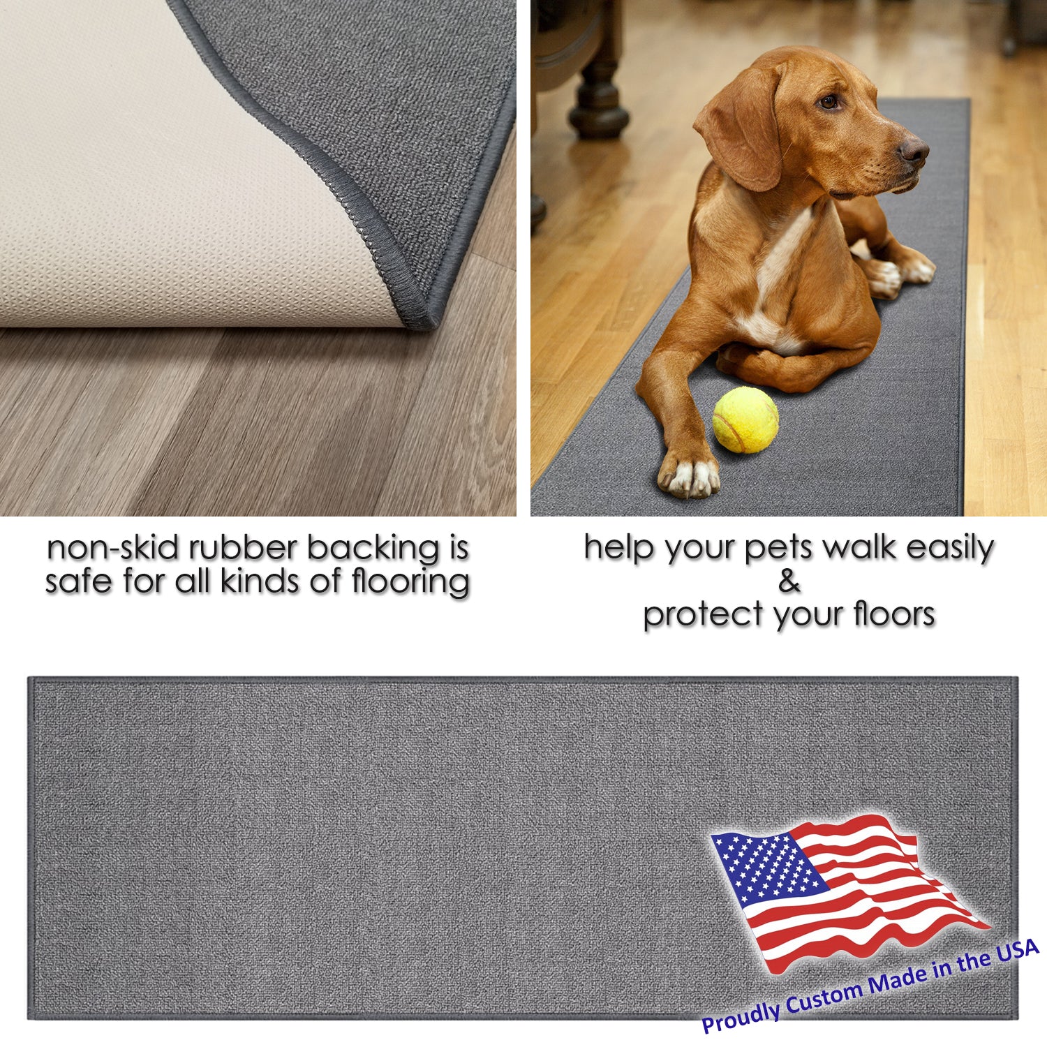 Our premium quality non-slip rubber backing is safe to use on hardwood, laminate, vinyl, marble, and tile flooring. Our rubber backed runner rugs help your kids & pets safely walk on slippery hallways, stairs, kitchens and living room floors while protecting it from high traffic usage. Efficient low-pile does not add bulk to your floor and allow for perfect placement under furniture and doors as well as on stairs. Proudly custom made in the USA with imported materials.